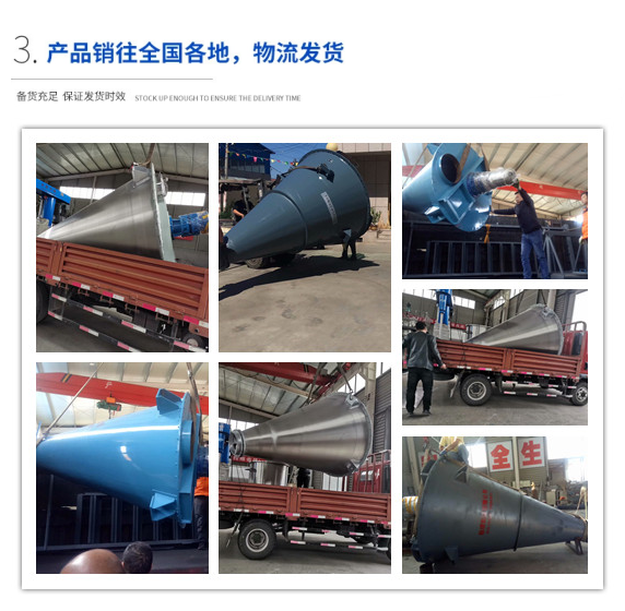 5、筒體部分:筒體為錐形結構,作乘物料用,使出料迅速、干凈、無積料,無出料死角。