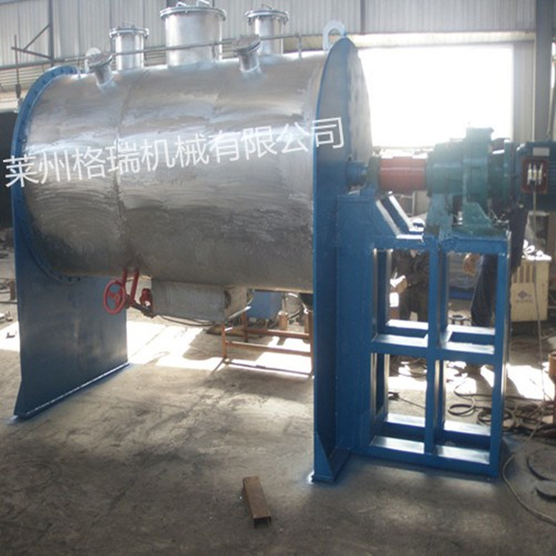 犁刀混合機主要由傳動部分,臥式筒體、犁刀組軸、飛刀組、出料閥、噴液裝置等組成。 混合機傳動部分由電機、擺線針輪減速機、聯軸器、犁刀軸等部件組成。臥式圓筒體作盛物料用,筒體上開有若干孔,供進出料、觀察用。犁刀軸支承座固定在筒體二端的蓋板上。犁刀組由犁刀、犁刀臂和主軸組成,犁刀由犁刀臂安裝在主軸上,并作成哈夫結構,便于拆裝。飛刀組由多把飛刀組成,通過付電機直接驅動,安裝在筒體側面。出料閥裝在筒體的底部(連續出料除外),用于關閉和放出物料。混合機噴液裝置固定在筒體上方,噴嘴采用農用噴頭,噴散效果好。