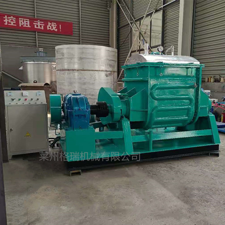 電加熱捏合機分普通型、壓力型、真空型三大類,加熱方式為電加熱,出料方式有液壓翻缸傾倒式、手動傾倒式、球閥出料式及螺桿擠出式等,與物料接觸部件均采用不銹鋼或碳鋼制成,能確保制品的純度和質量。該機采用“Z”型雙槳攪拌,能使物料迅速反應,均勻混合。