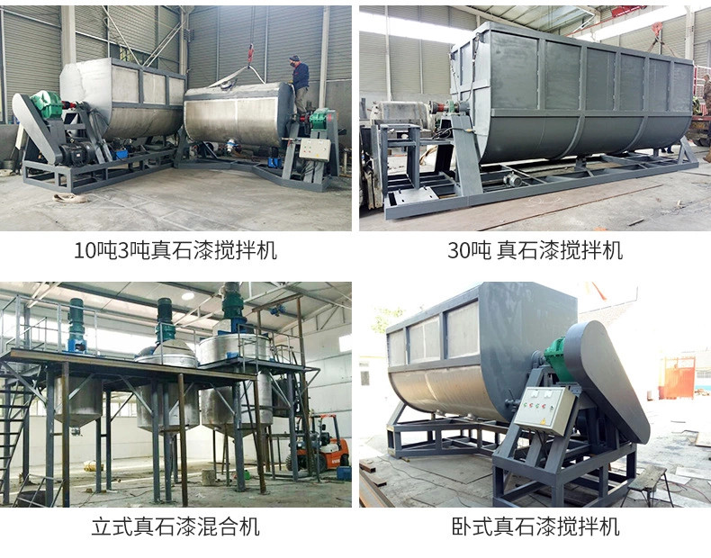 具有以下特點:出入料方便、占地面積小、生產效率高,是生產真石漆的設備。真石漆是一種很稠厚的厚質建筑涂料,涂層施工干固后十分堅硬,指甲不能摳動,一般的真石漆如果在良好的天氣情況下施工三天后仍能用指甲摳動,應視為涂層太軟。真石漆是用合成樹脂乳液與不同級配的彩砂粒子及多種助劑配制而成的,它的生產過程與一般建筑涂料的生產過程是不相同的,不需要通過高速攪拌或研磨等工序,主要是物料攪拌的過程,因此不能使用普通涂料的生產設備,應當使用適合于攪拌稠厚料漿的攪拌機進行生產,本公司生產的真石漆攪拌機是根據真石漆的工藝技術特性,由我廠自行設計開發的一種新型混合機,其集刮壁、混合于一體,運行時能使物料進行三維翻滾,使物料快速均勻混合,并有效的***死角及物料掛壁。